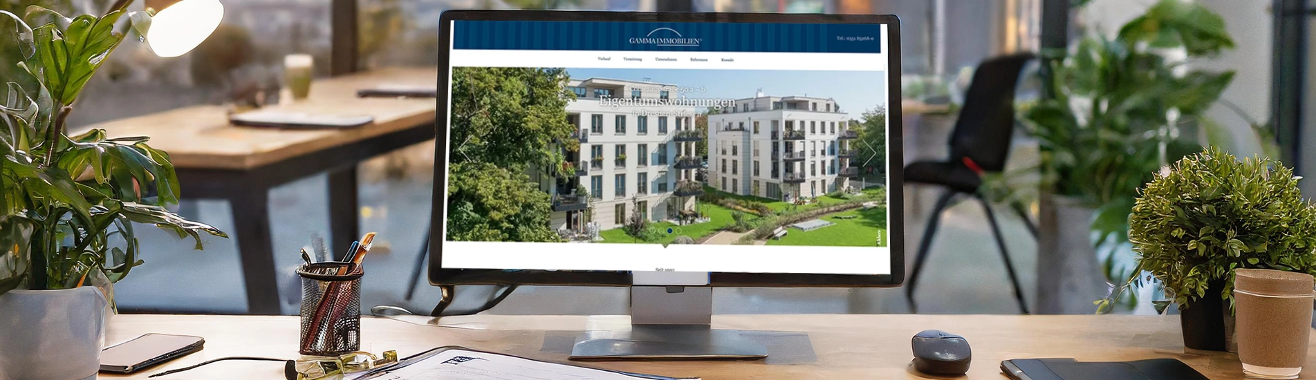 Für Gamma Immobilien galt es, eine Webseite zu schaffen, welche das Unternehmen, die Projekte und das Engagement der Firma gleichermaßen darstellt.