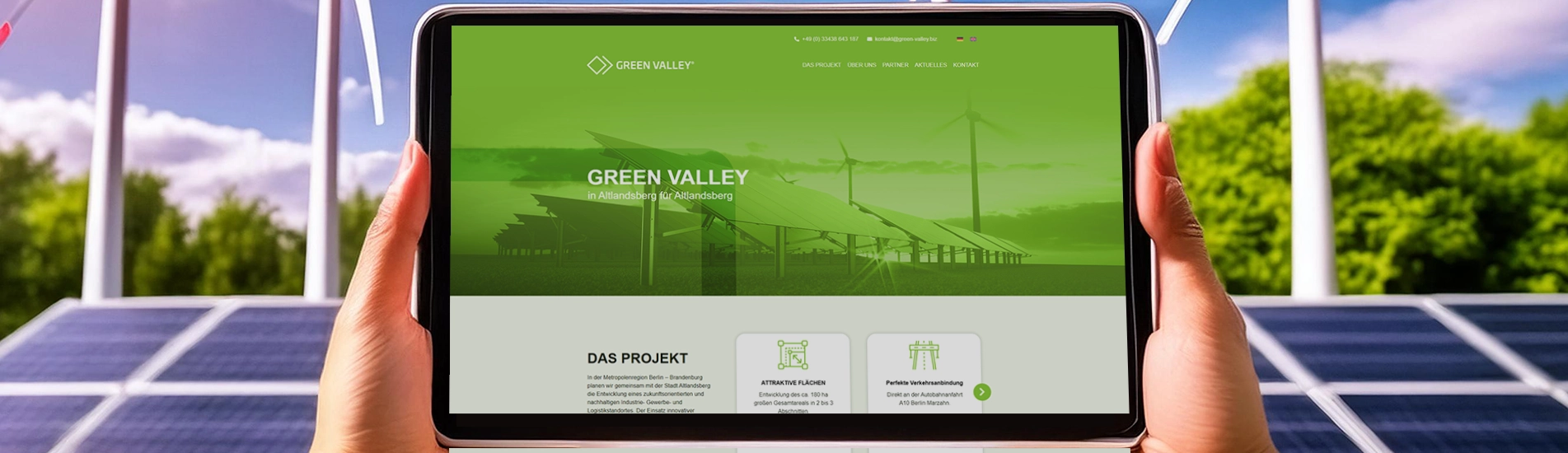 Um Interessenten und den Bewohnern der Region grundlegende Informationen zu dem Projekt zugänglich zu machen, sollte eine schlanke Webseite geschaffen werden. Diese sollte aber auch für zukünftige Erweiterungen, wie zum Beispiel der Bewerbung von Flächen, gewappnet sein.