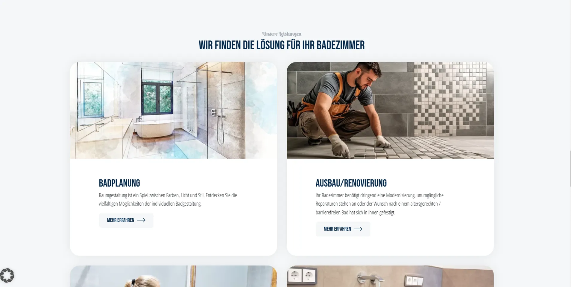Die neue Website sollte den modernen und ästhetischen Anspruch des Unternehmens widerspiegeln – mit einem bildlastigen, dennoch leicht wirkenden Design. Gleichzeitig war eine übersichtliche Darstellung der Leistungen wichtig, um Besuchern gezielt zu informieren. Ein besonderer Fokus lag auf den Referenzen, die das handwerkliche Können und die Individualität der Bäder zeigen sollten. Zudem sollte der Karrierebereich attraktiver gestaltet werden, um Fachkräfte gezielt anzusprechen.