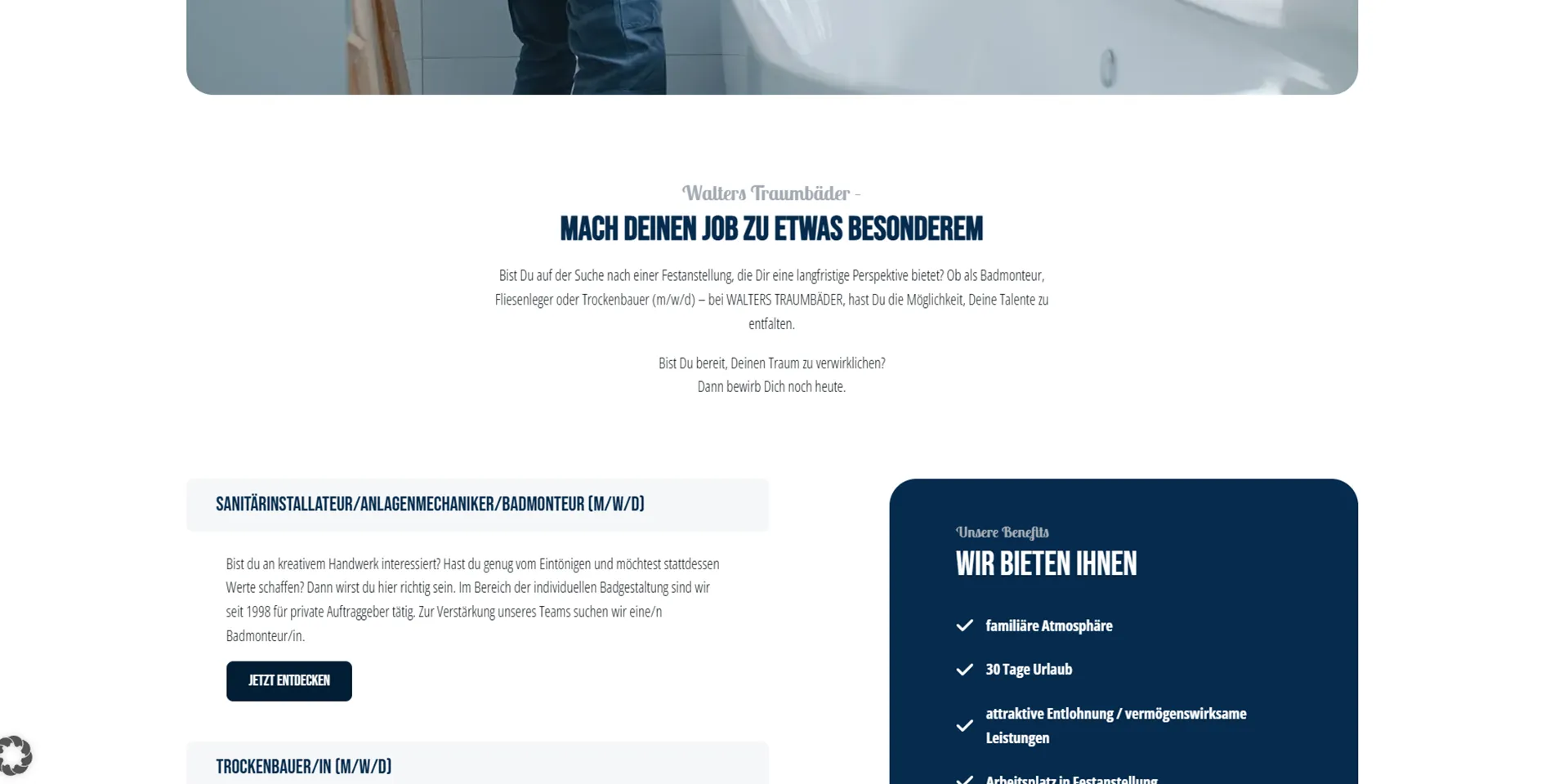 Mit dieser Lösung wurde eine moderne, visuell ansprechende und zugleich funktionale Website geschaffen, die Walters Traumbäder optimal repräsentiert.