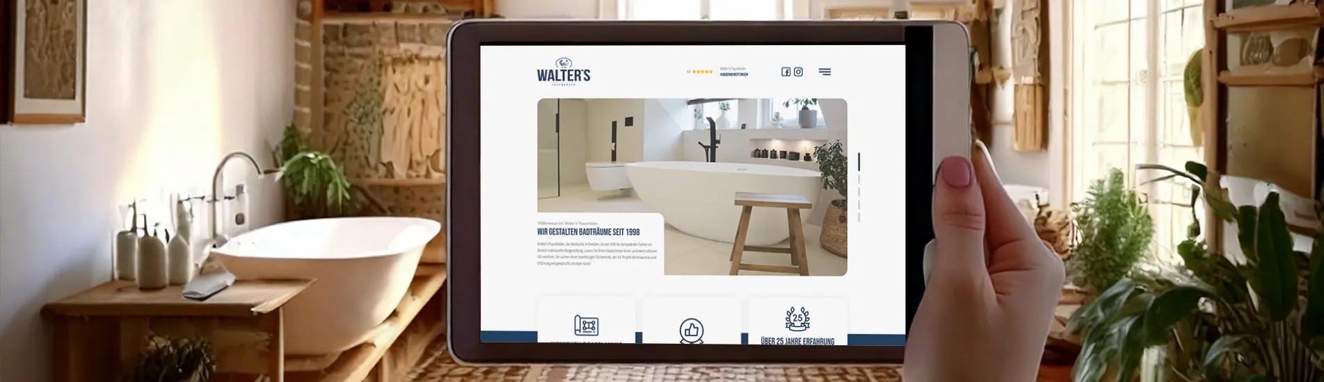 Mit dieser Lösung wurde eine moderne, visuell ansprechende und zugleich funktionale Website geschaffen, die Walters Traumbäder optimal repräsentiert.